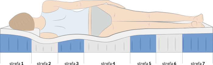 Dzięki podziałowi na 7 stref twardości materac idealnie dopasowuje się do naturalnego kształtu ciała, zapewniając niezbędne oparcie dla kręgosłupa.