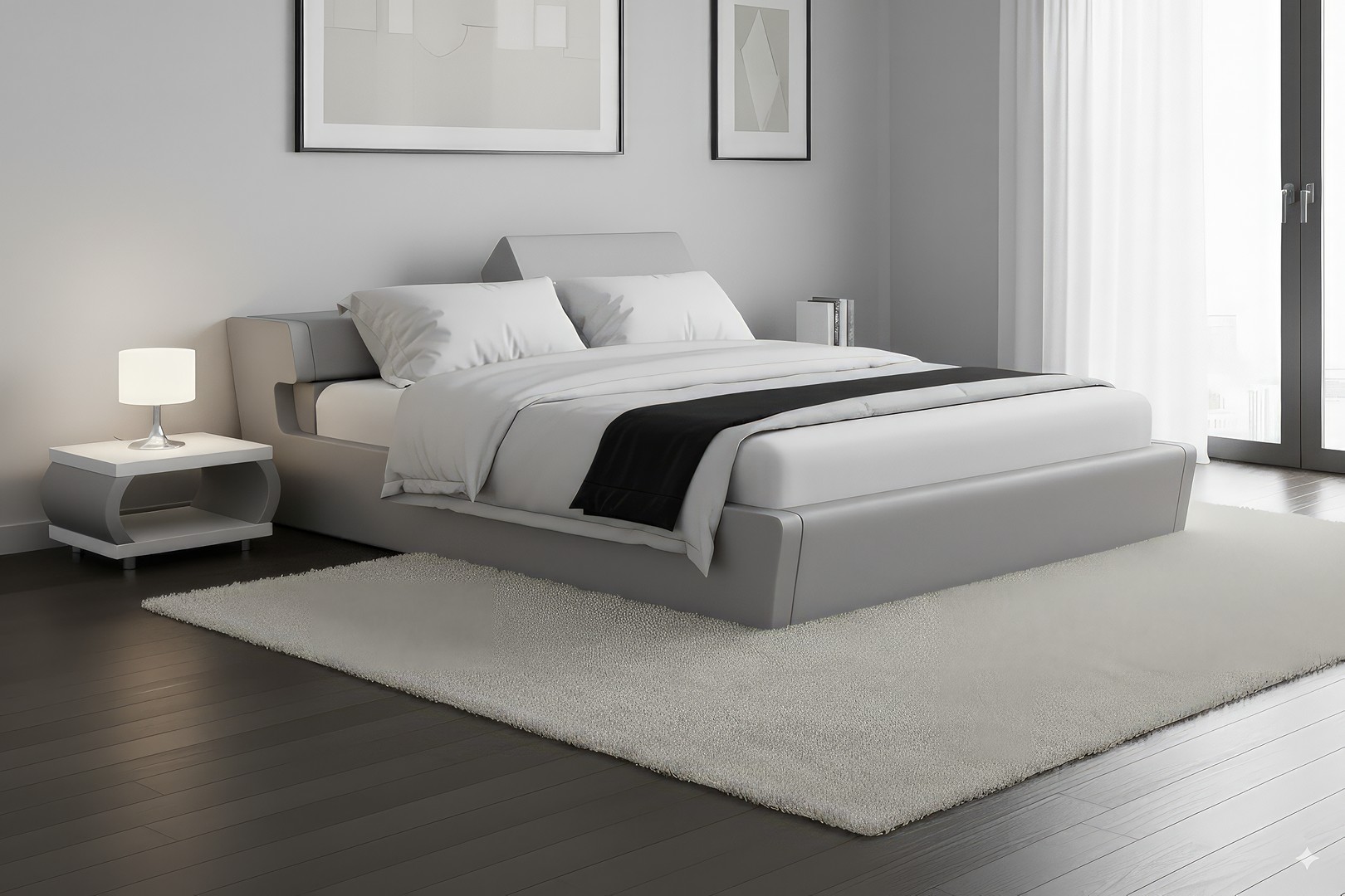 Jego kształt jest subtelny i zachęcający do przyjemnego spędzania czasu w sypialni , łóżko jest bardzo nowoczesne i eleganckie .